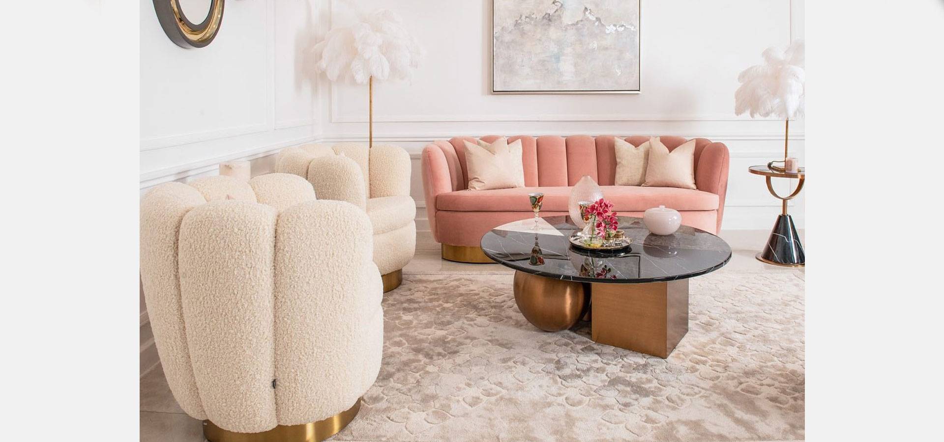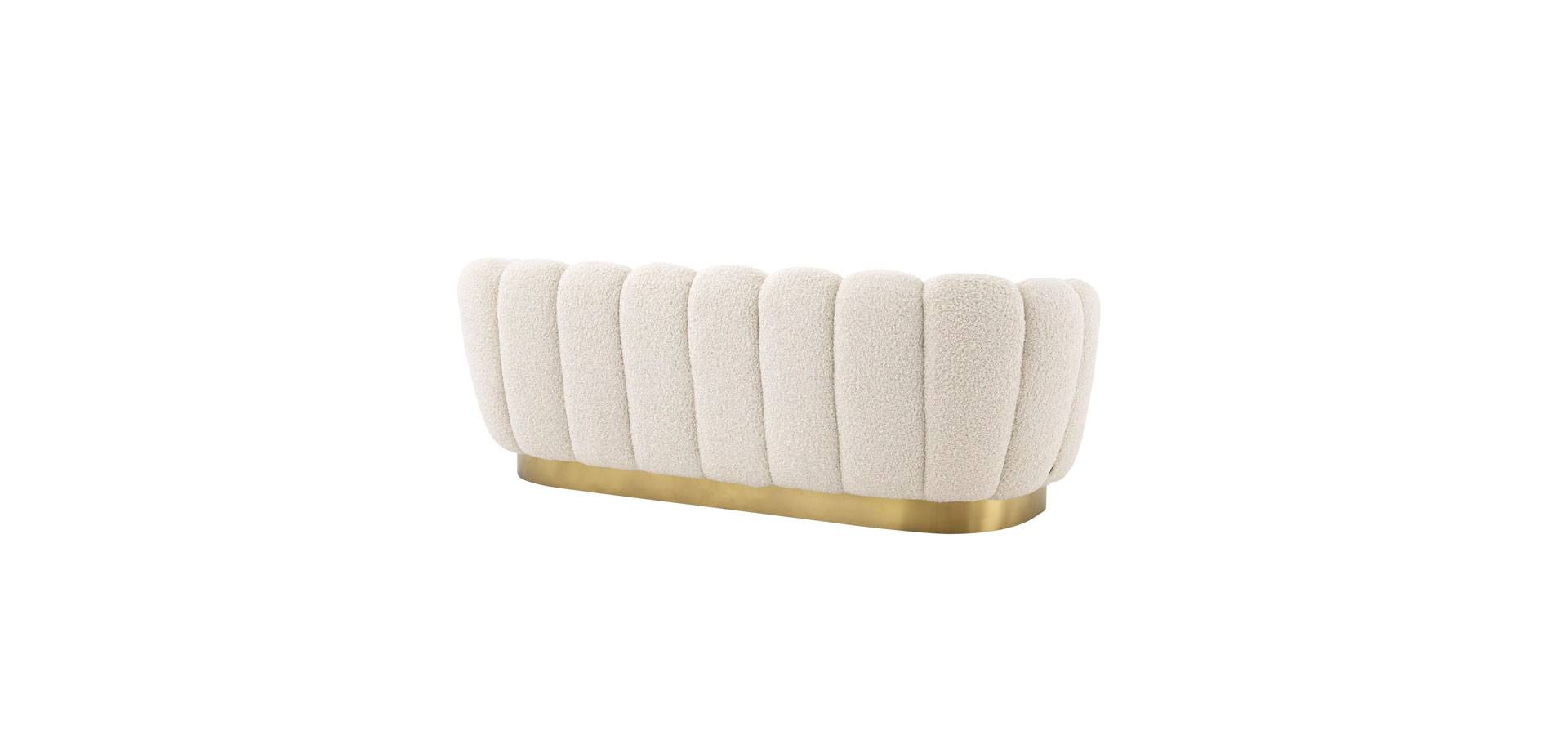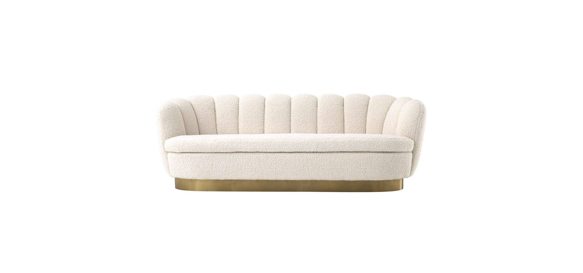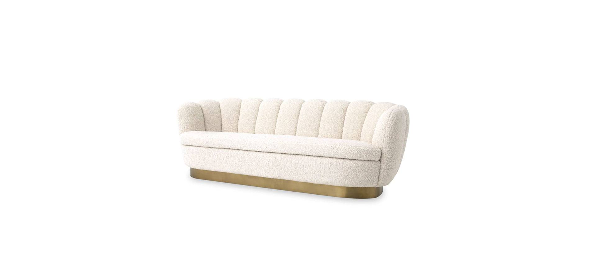 Add fifties-inspired glamour to your living room with the sumptuous Mirage Sofa. With a lush velvet upholstery in faux shearling, this alluring shell-shaped sofa with brushed brass finish base will round out your interior design.