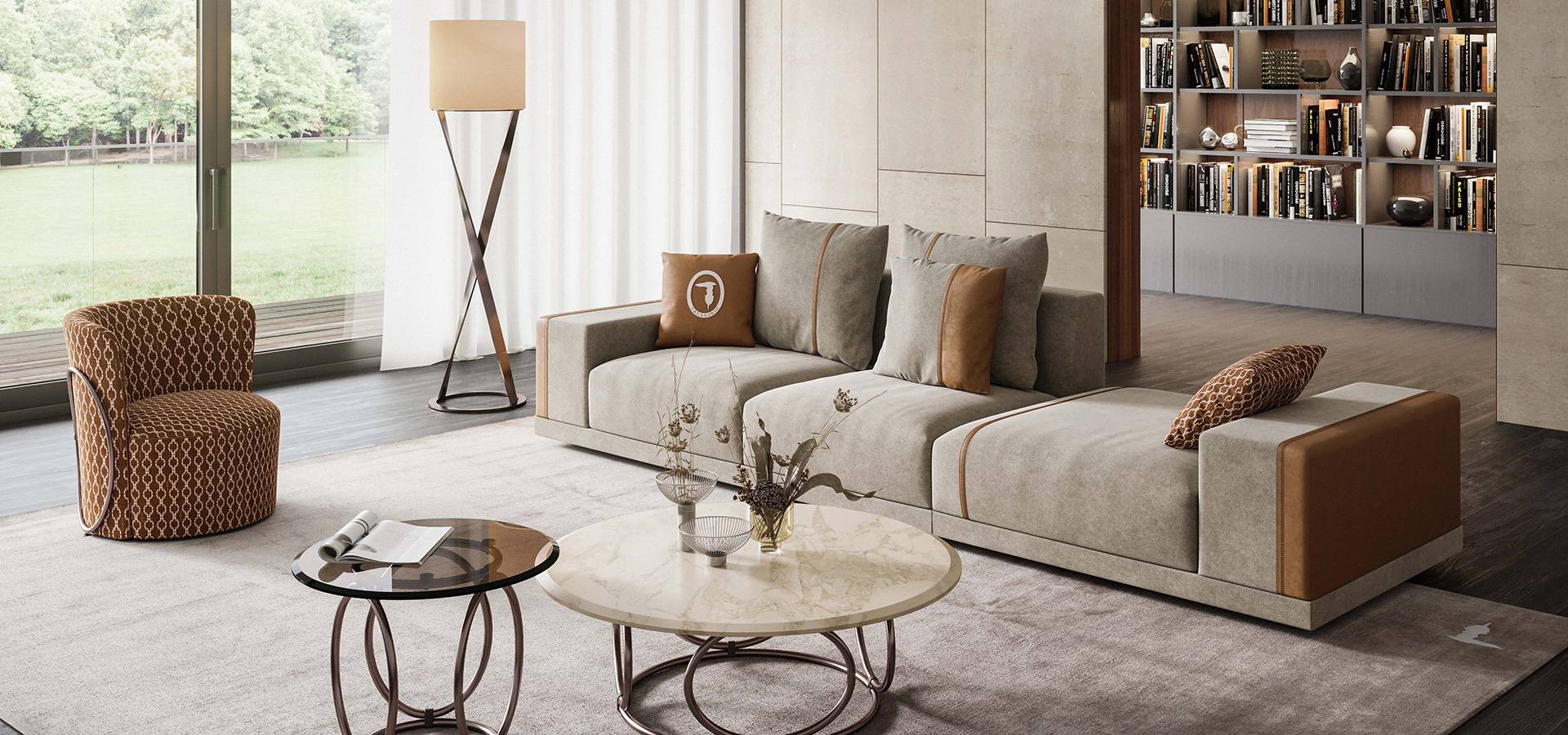 The Modergen couch, available in fabric or leather, offers an environment conducive to socializing at home. The best leather-crafting history and fashion characteristics of the Milanese brand stand out, particularly the "Chain Stitch," a beautiful leather insert on back cushions, armrests, ottomans, and peninsula seats. Modergen can be linear, made up of corner components, or used to create "islands" in the center of the space for peaceful times.