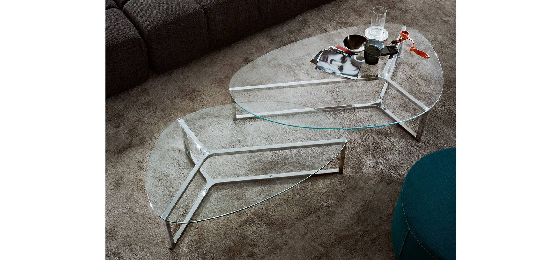 Top is made of 8mm transparent tempered glass. Base made of bright stainless steel (20x20x1,5mm). The core section is chromed aluminum. Tempered smoked "grigio Italia" glass top and burnished lacquered metal structure are also available.