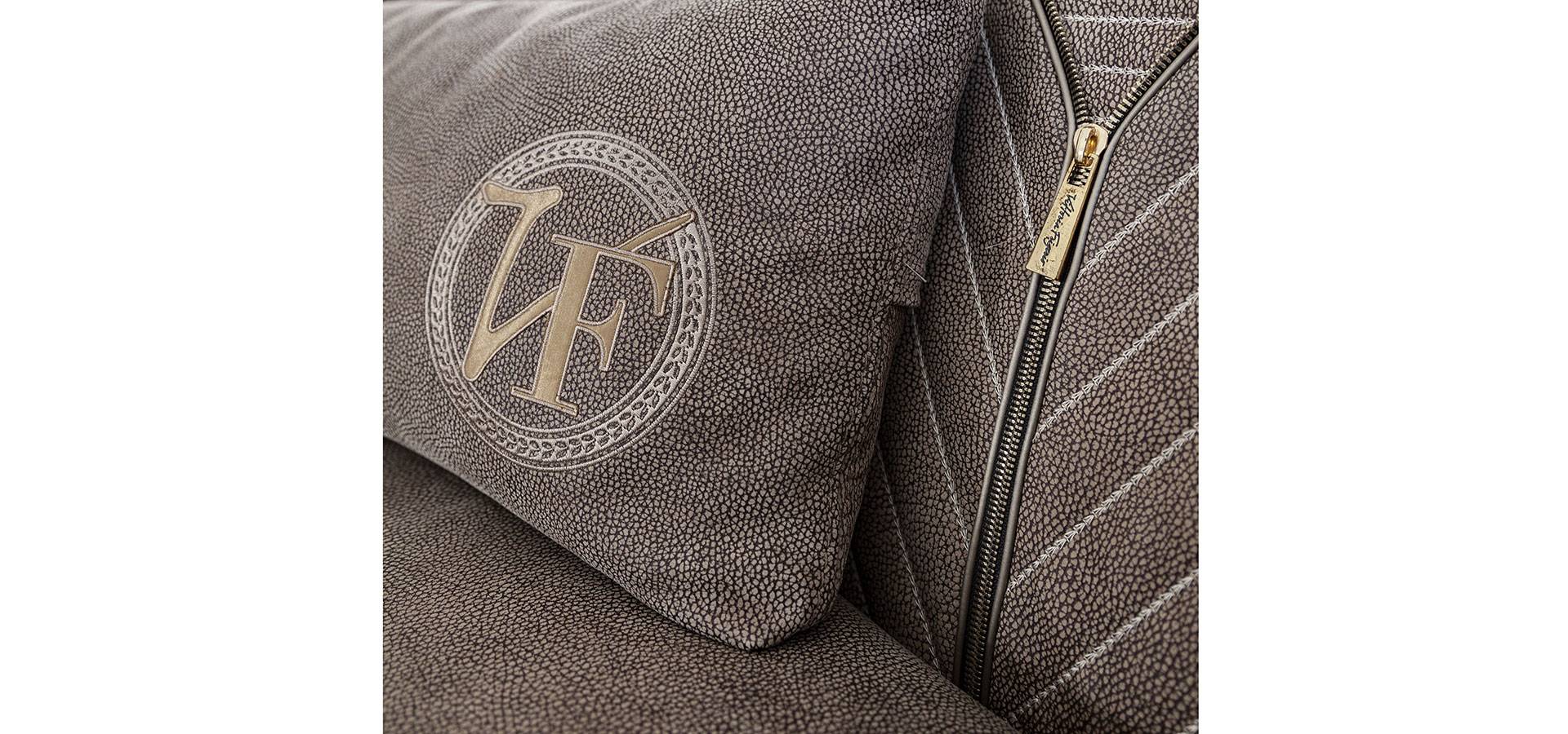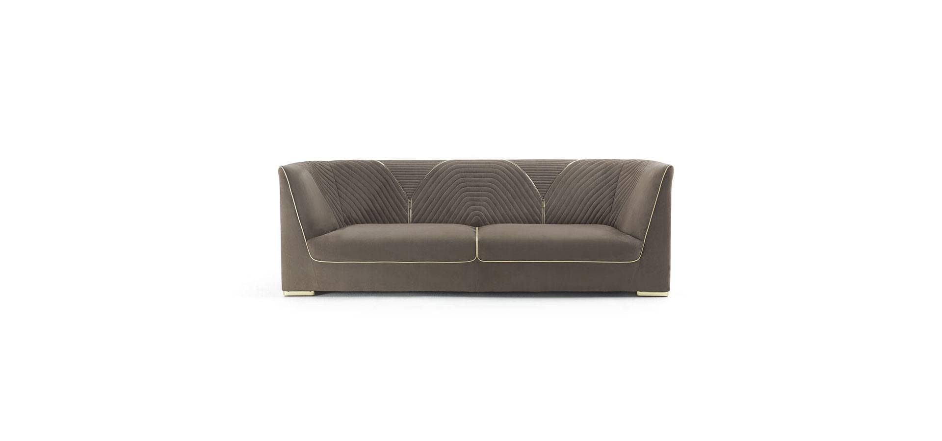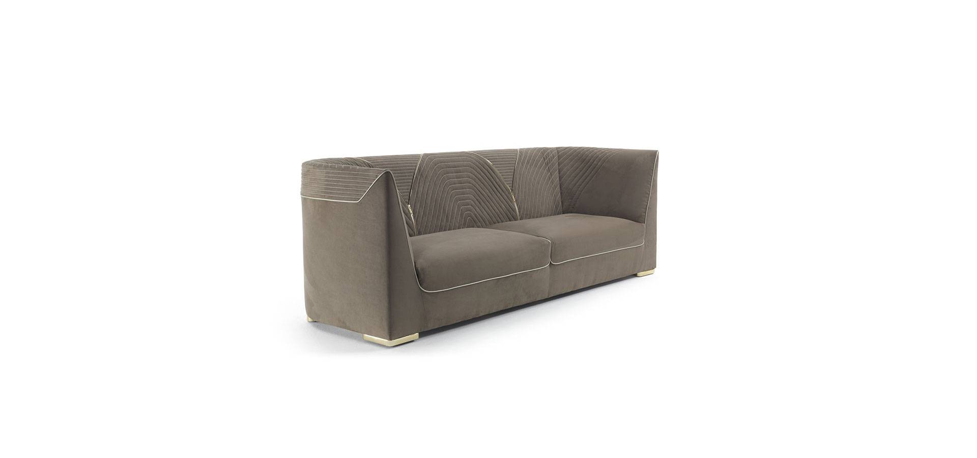 The Ranieri sofa's visual language is based on classic and strict lines, and it conveys dynamism and completeness thanks to the delicate diagonal of the armrest that blends into the backrest in a continuous line. The backrest's inner and upper portions are adorned with devoted needlework, which is complemented by a hinge in gold or black chrome with a sleek profile. In a version of elegant refinement, Ranieri provides an excellent plan.
