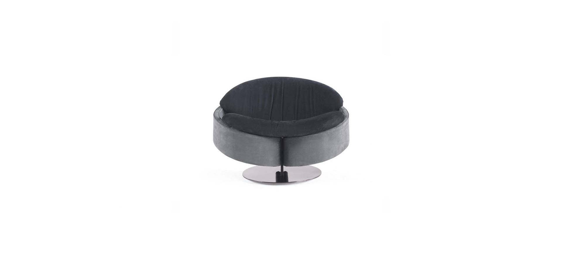 The Sherlock armchair has a complex design and manufacturing, with a steel base and a single central vertical element to support the weight of the armchair. The band that wraps around the armchair to form the backrest and arms is made of curved wood with a double slope; a complex element that necessitates precise and articulated carpentry work. The Sherlock armchair, with its new upholstery that combines nubuck leather and Pied de Poule, is a piece of furniture with a distinct contemporary design.