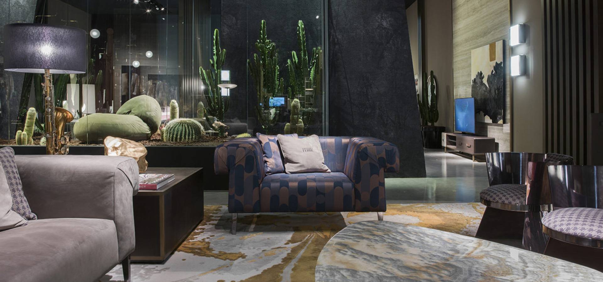 Thanks to the mix of the smooth leather upholstery and the black chrome finish of the feet, elegance and sobriety come together to meet the urban character of the Gianfranco Ferré Home 2019 collection.