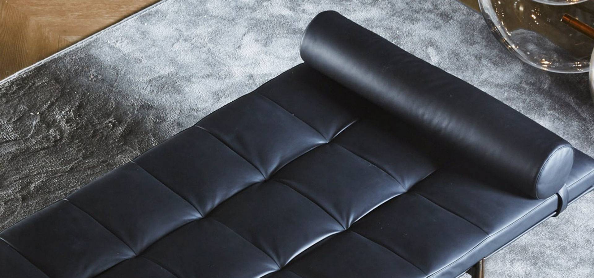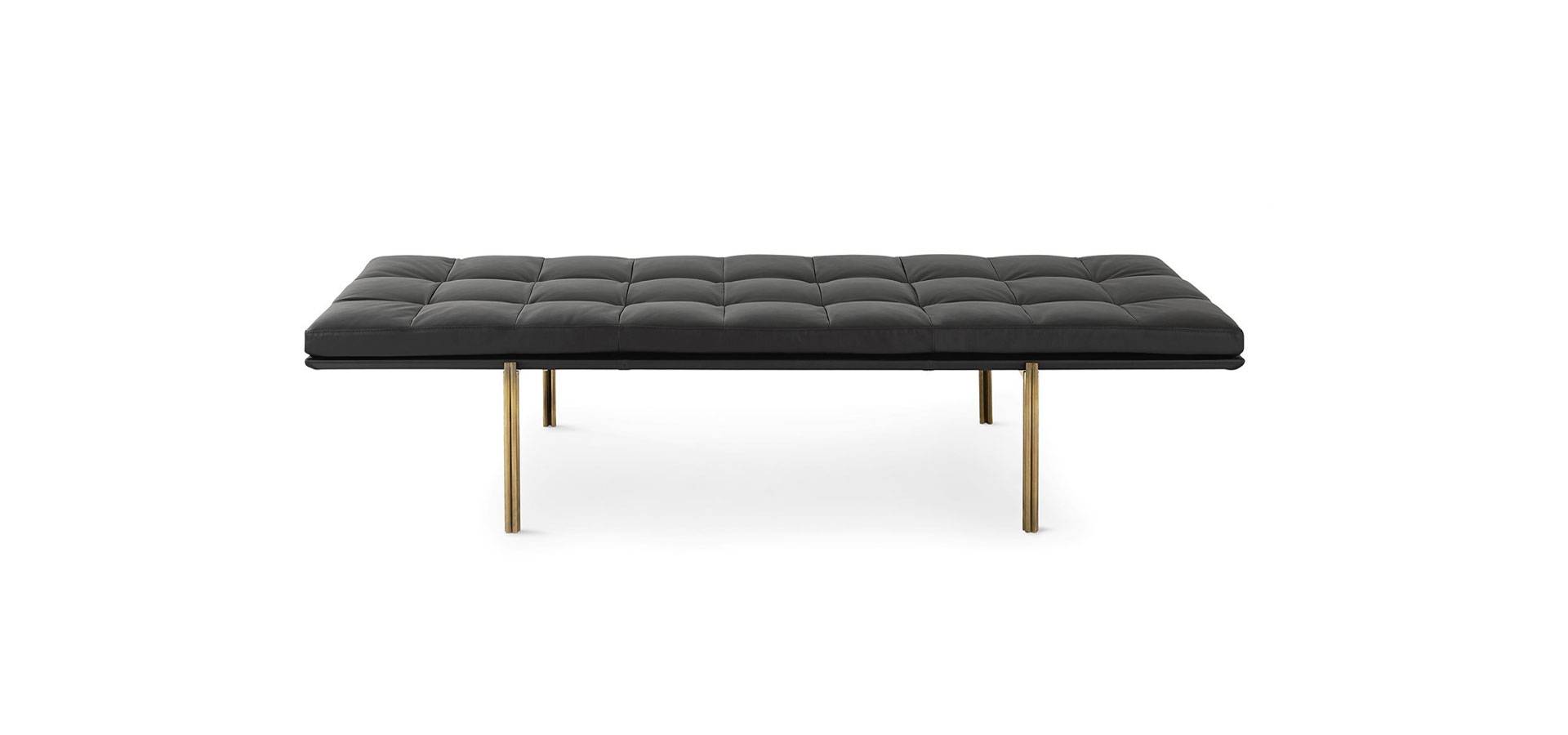 Hand-burnished metal structure with polyurethane foam mattress upholstered in cloth or leather in the samples' colors. For the 200 centimeter variant, a headrest is provided.