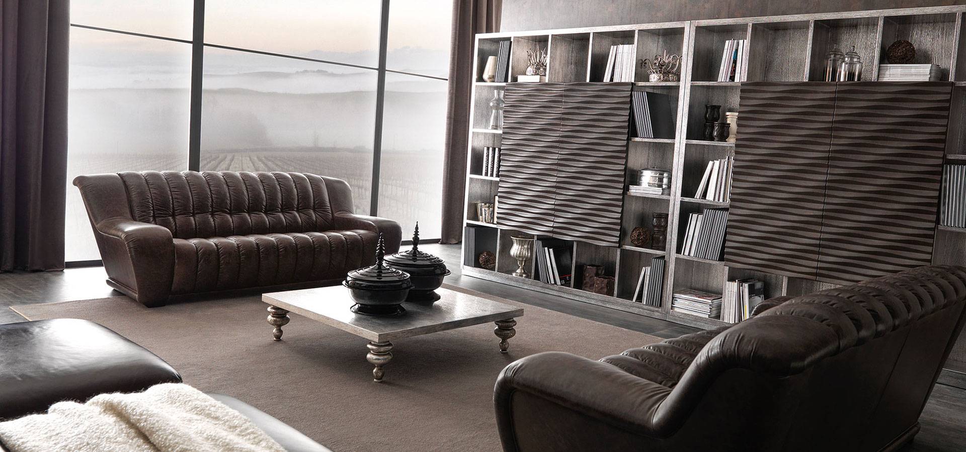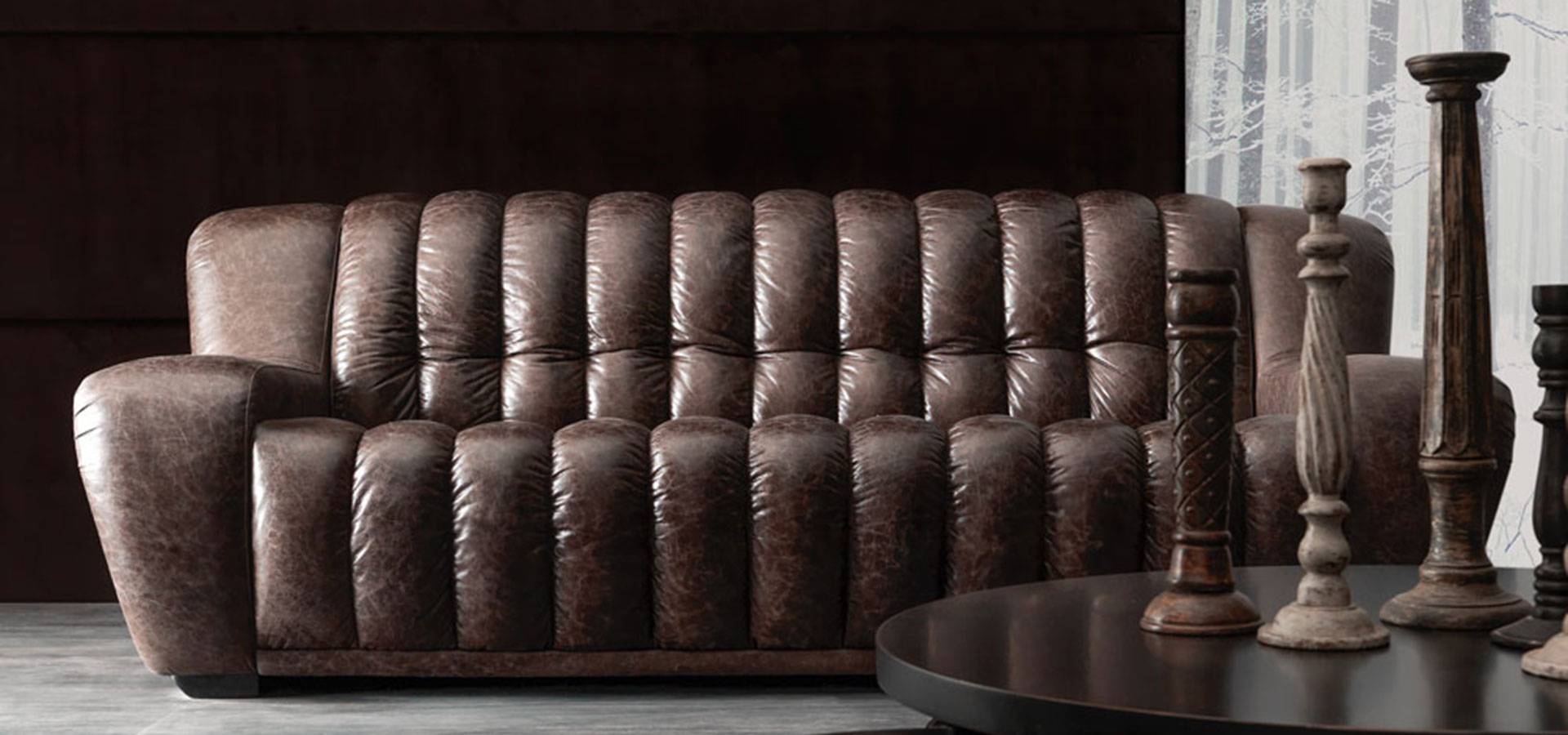 Victor is a large sofa with smooth curves and a vintage-inspired design. Design, comfort, and valuable materials are brought together to create a unique harmony in settings. The striped padding, as well as the extravagant look, evoke tailoring and stunning confidence. A diverse range of finishes allows for the creation of new color combinations on a regular basis.